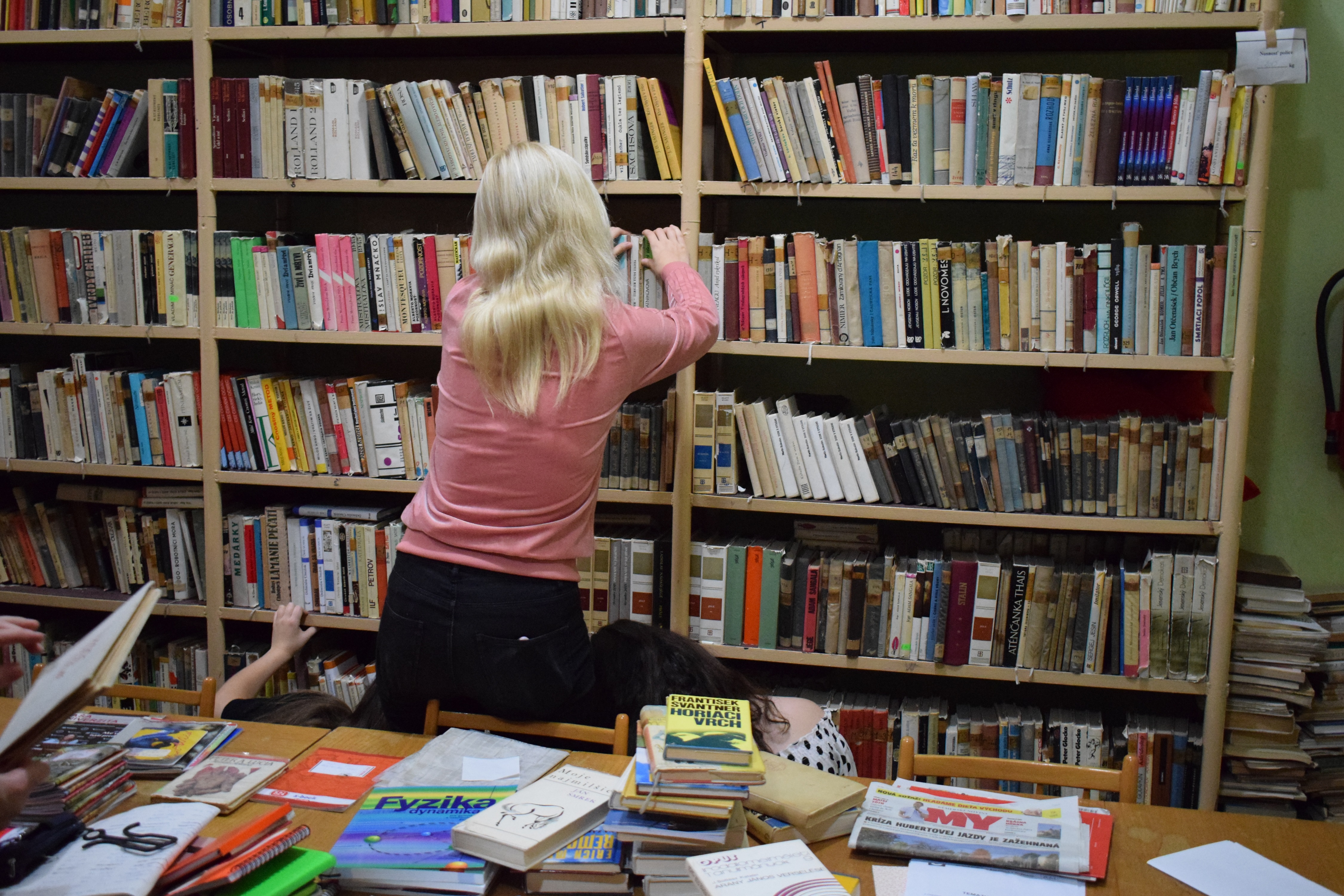 In this activity the students had to find 20 Slovak books and 10 books from the world literature. They had a poster with different pictures, each picture represented a title of a book. The students had to find as many books as they could.