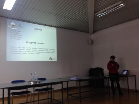 Uz predavače Majdu Bekić Vejzović, Lidiju Farkaš i Krešimira Bagića, voditeljica projekta Jelena Crnek održala je predavanje na temu RSP čitatelja i dala niz informacija o rezultatima projekta u razdoblju od dvije godine. Izgrađen na smjernicama koje je postavila EU (HGHGL, 2012.) projekt će svojom inicijativom pomoći srednjoškolskim nastavnicima, knjižničarima, stručnim službama kao i edukatorima školskoga osoblja u razvoju onih vještina potrebnih za podršku NLP čitateljima.
