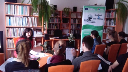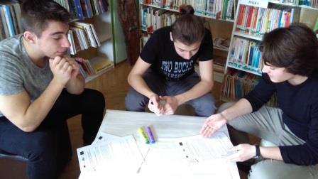 Prvou časťou úloh bolo pracovanie s prekrásnymi maľbami a so známym fantasy príbehom v angličtine s pani profesorkou Chocholovou. Iní študenti sa venovali s pani profesorkou Kalinovou srdcervúcemu, no nádhernému príbehu v slovenčine. Najväčším prekvapením bola perfektný lov na knihy, pod vedením pani profesorky Szanyiovej! Rozdelení do skupín sme pátrali po knižkách takmer v celej knižnici, hľadali indície a pretekali s časom. Jedna kniha nás doviedla k druhej, lámali sme si hlavy nad zakódovanými správami v anglických aj v slovenských knižkách a na chvíľu sa zahrali na detektívov. Vyhrali chlapci z 1.B s fantastickým časom a vedomosťami o fantasy knihách.